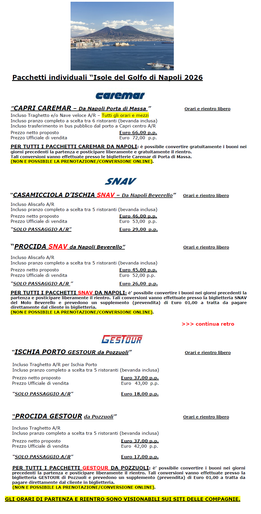COUPON PER LE ISOLE DEL GOLFO DI NAPOLI CAPRI - ISCHIA - PROCIDA VIAGGIO A/R + PRANZO COMPLETO E ALTRE AGEVOLAZIONI OPPURE SOLO VIAGGIO | TRAGHETTI E ALISCAFI CON PARTENZE DA NAPOLI E POZZUOLI | ||||